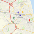 Mapbender demo application with no sidepane, floating search and custom css showing many elements in action